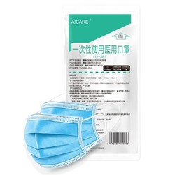 aicare 小糖医 一次性三层防护医用口罩 蓝色 10只