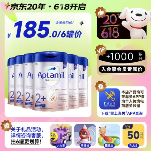 爱他美(Aptamil)德国爱他美白金双重HMO 婴幼儿配方奶粉 白金版2+段6罐(2岁以上)
