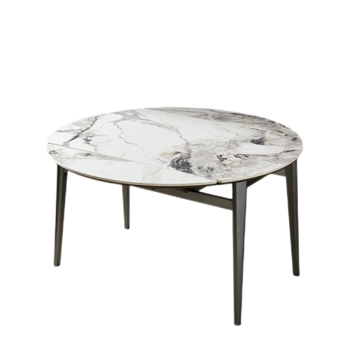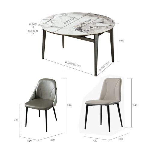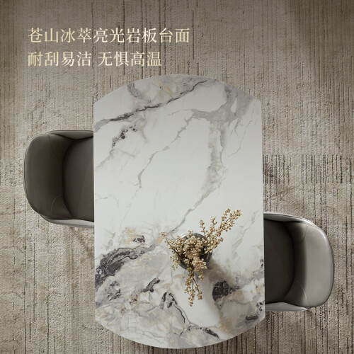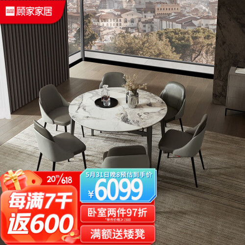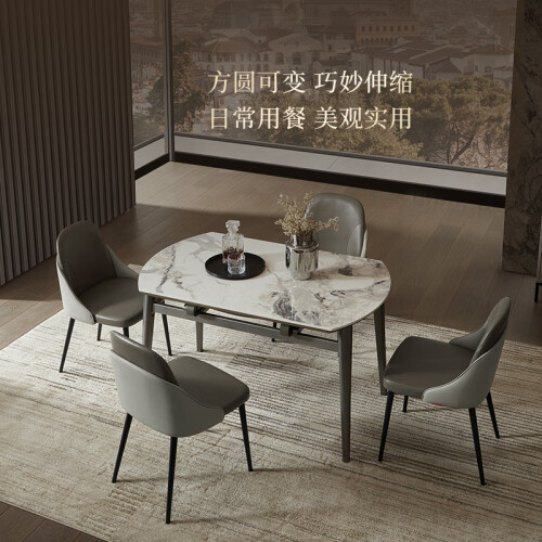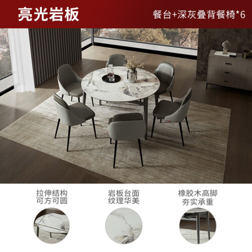 顾家家居岩板餐桌椅组合伸缩折叠大圆桌饭桌15天发货7009 餐台+灰叠背椅6