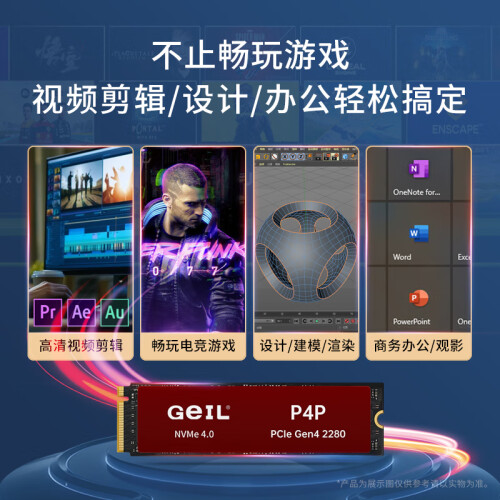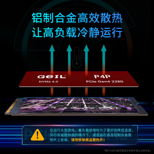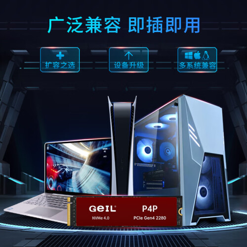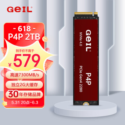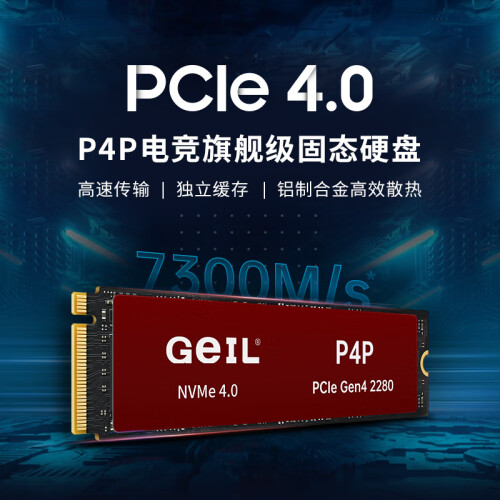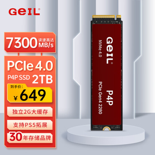 GeIL金邦 2TB SSD固态硬盘 M.2接口(PCIe 4.0 x4)NVMe SSD游戏高性能版 2G独立缓存高速7300MB/S P4P系列
