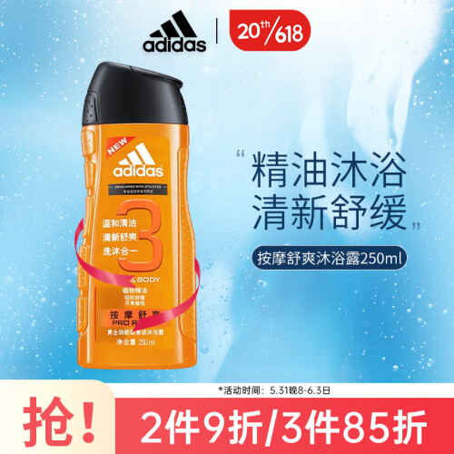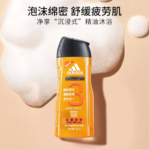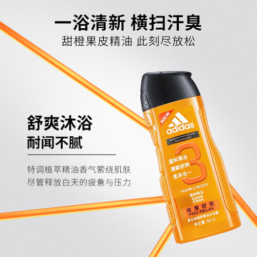 阿迪达斯 (adidas)男士按摩舒爽香波沐浴露250ml 洗发沐浴露洗沐二合一持久留香