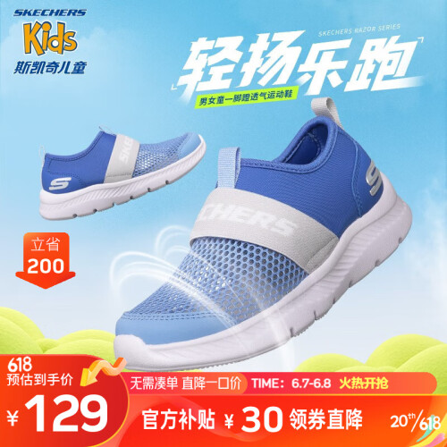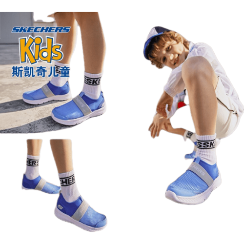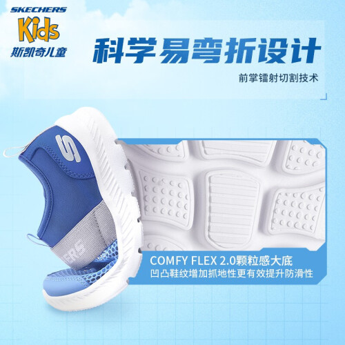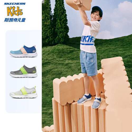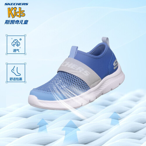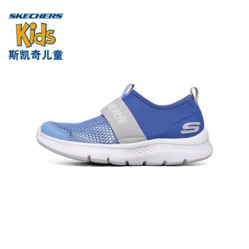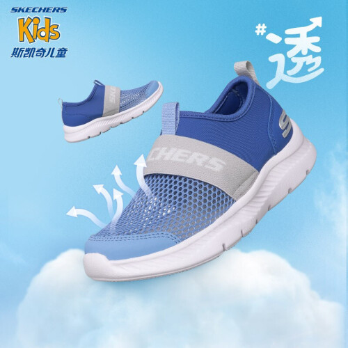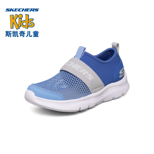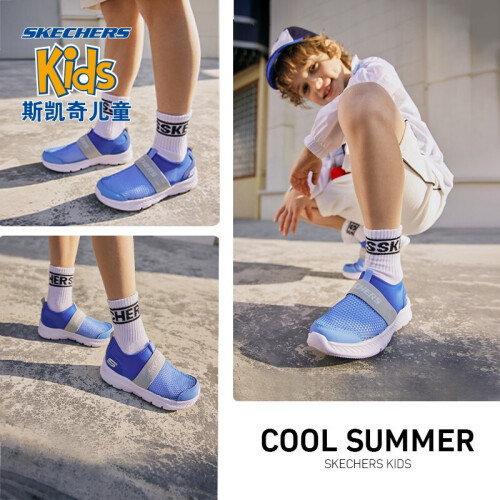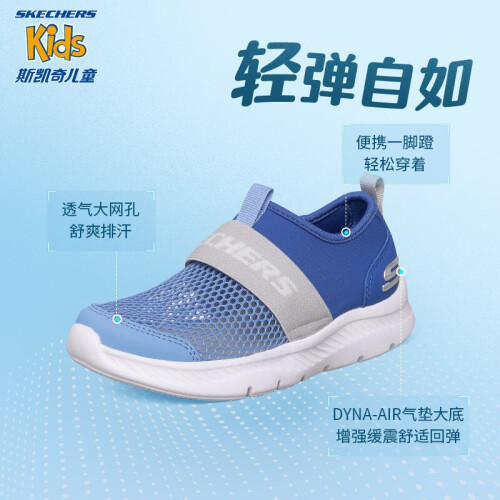 Skechers斯凯奇儿童运动鞋透气网鞋男童鞋夏季一脚蹬轻便软底鞋660064L 蓝色/灰色/BLGY 37