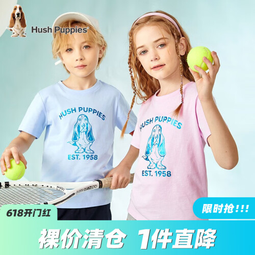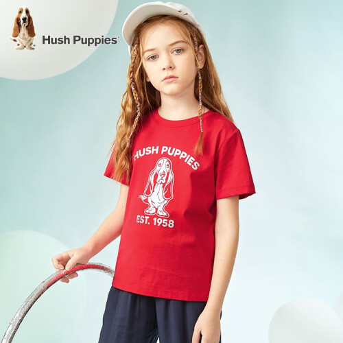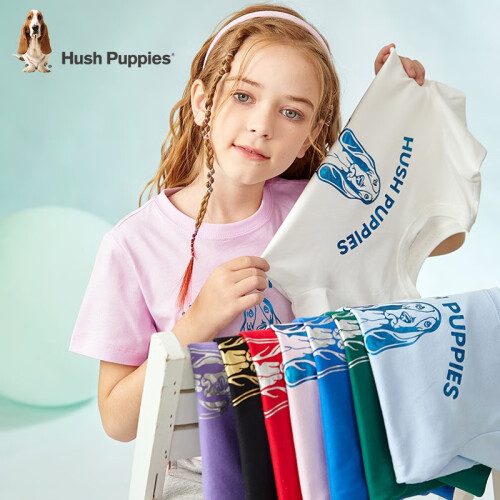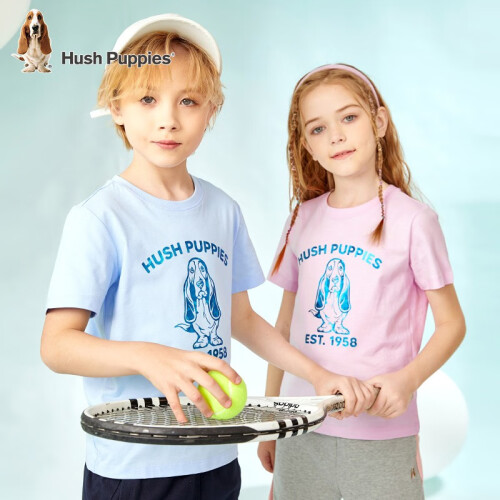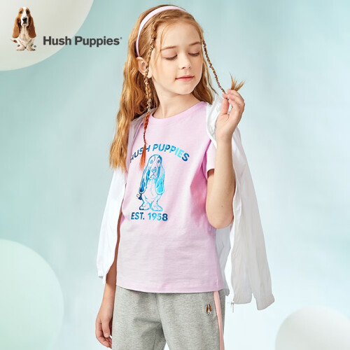 暇步士(Hush Puppies)童装男童女童短袖夏季新款男女大童舒适时尚短袖 藕荷色 160cm