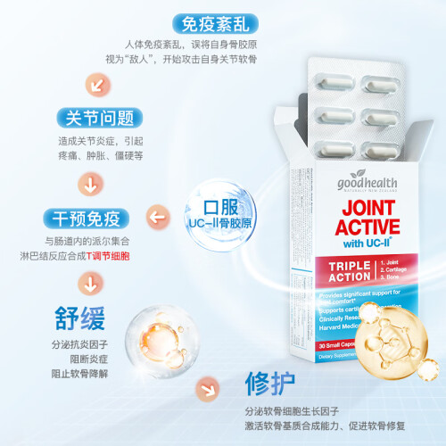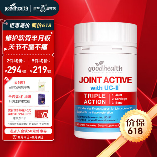 goodhealth好健康UC2非变性骨胶原蛋白软骨素维骨力氨糖 骨骼健康半月板损伤关节肽促钙骨质密度90粒新西兰