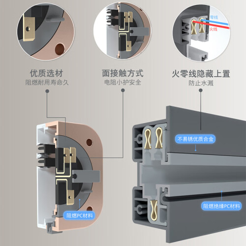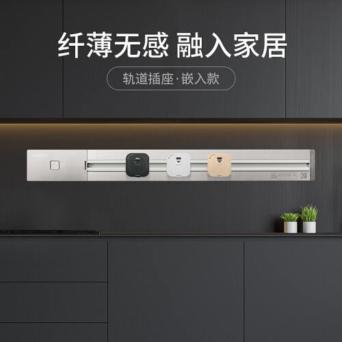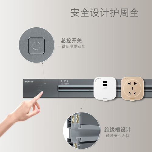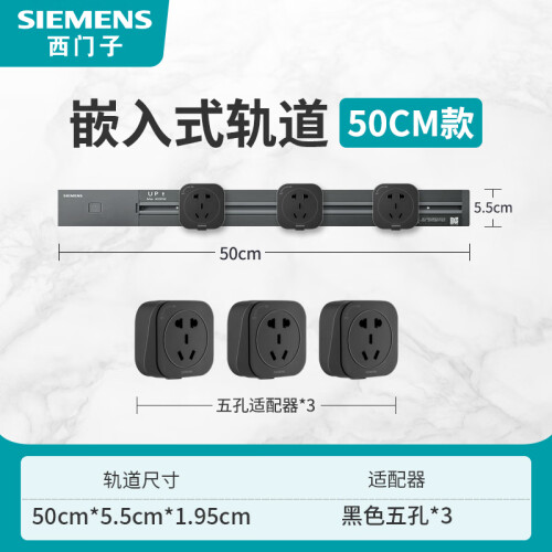 西门子(SIEMENS)灰色轨道插座 嵌入式暗装电力轨道插座可移动墙插线板 50cm+黑五孔*3
