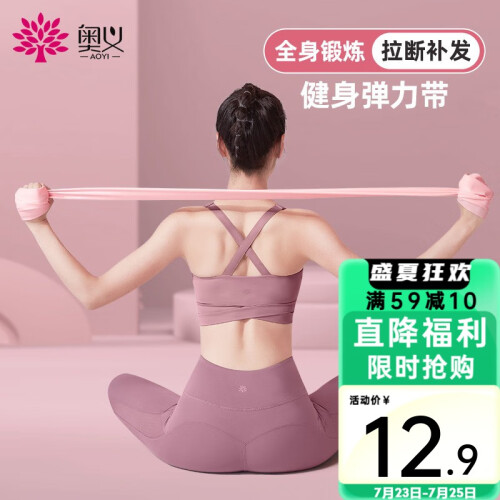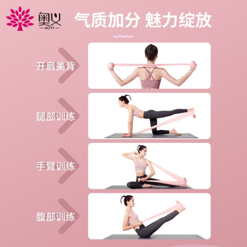 奥义 瑜伽拉伸弹力带女力量训练拉力带乳胶塑形胸部训练健身阻力带练臀部弹力圈居家运动拉力绳 粉色-1.5m基础款-(22磅)
