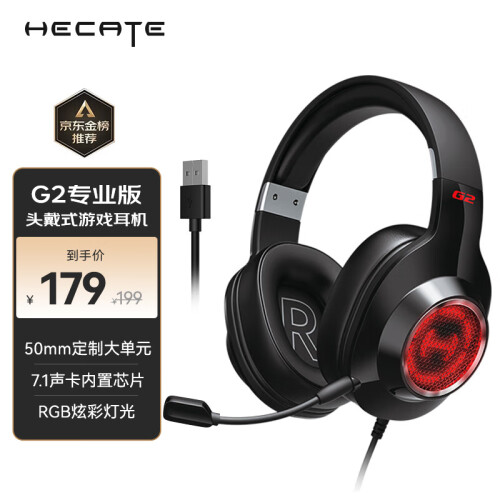 漫步者(EDIFIER)HECATE G2专业版USB7.1声道游戏耳机电竞耳麦头戴式电脑网课办公麦克风吃鸡耳机带线控 黑色