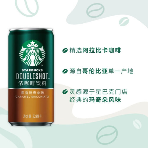 星巴克(Starbucks)星倍醇 小绿罐浓咖啡饮料(新老包装随机发货) 焦香玛奇朵228ml*6