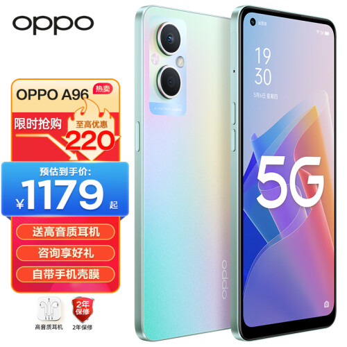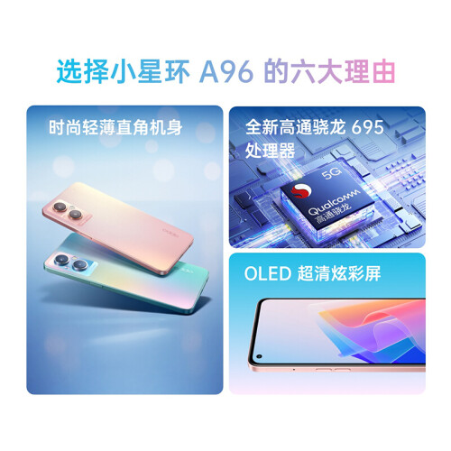 OPPO A96 新品5G手机全网通【1439起】轻薄闪充长续航拍照游戏手机a95升级版a96 琉璃幻彩(8G+128G) 全网通标配版【咨询有礼+全国联保】
