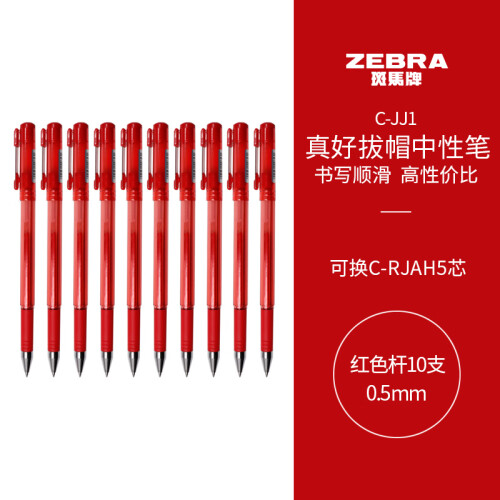 斑马牌(ZEBRA)真好中性笔 0.5mm子弹头签字笔 学生标记笔水性笔 C-JJ1 红色 10支装