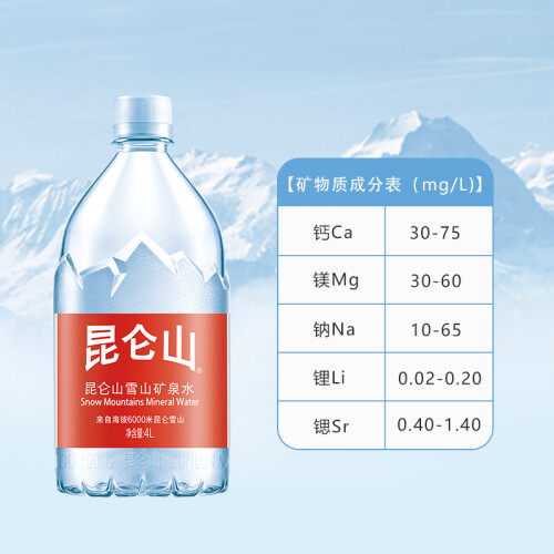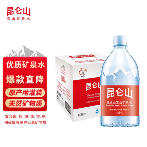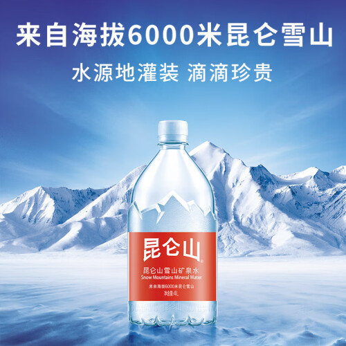昆仑山 饮用天然矿泉水 4L*4瓶 整箱装 高端矿泉水