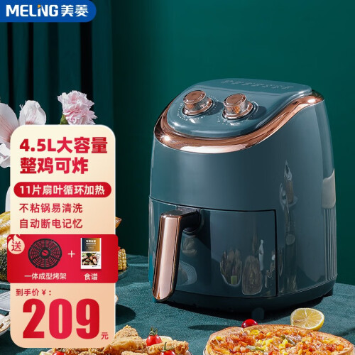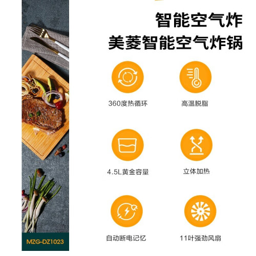 美菱(MeiLing) 【活动款】无油空气炸锅家用家电新款全自动无油烟电炸锅机智能薯条机智能触屏 3.8L双旋钮精准控温