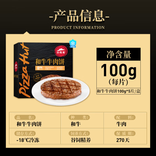 必胜客必胜优选 和牛牛肉饼100g*5片 方便速食汉堡饼 冷冻 早餐肉饼