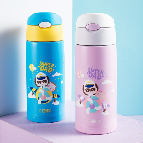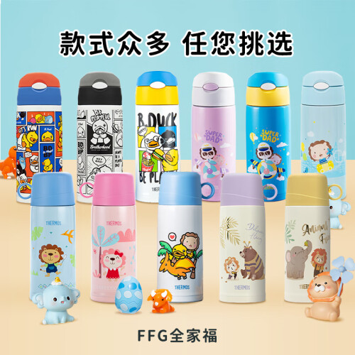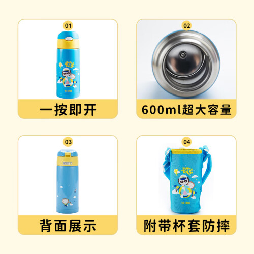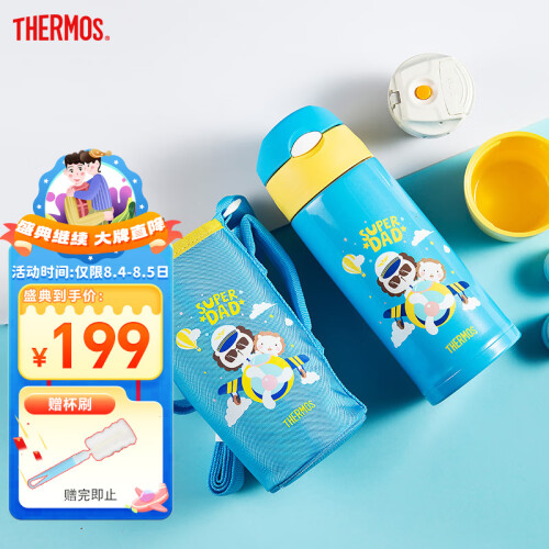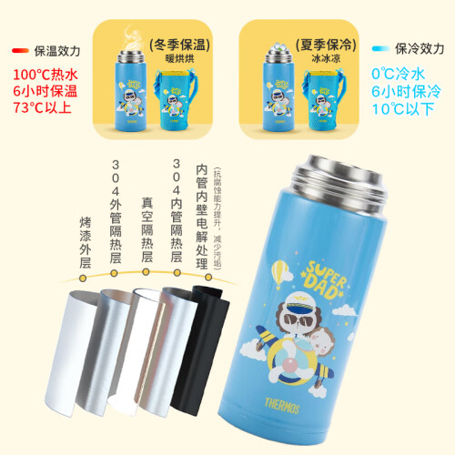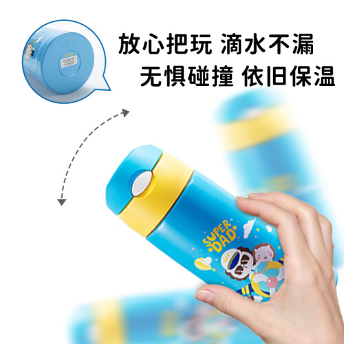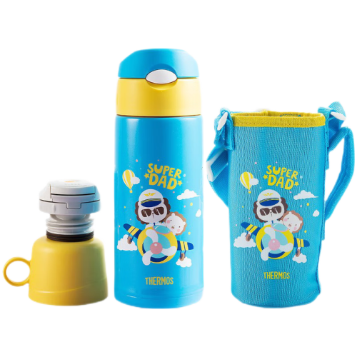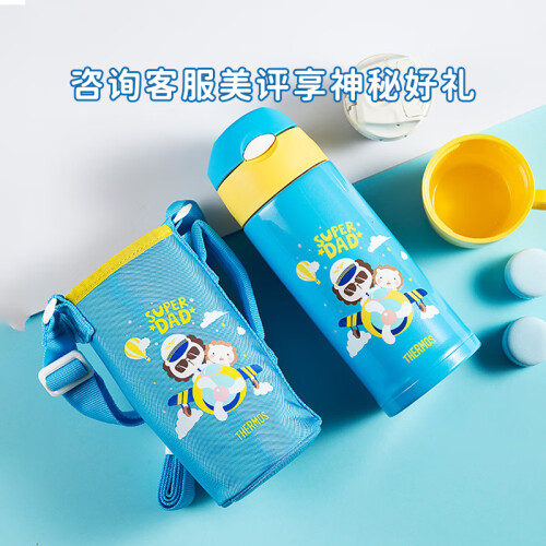 膳魔师儿童保温杯304不锈钢吸管杯3盖大容量保温水杯学生杯带杯套 FFG 蓝色机长(三盖)