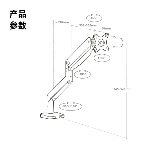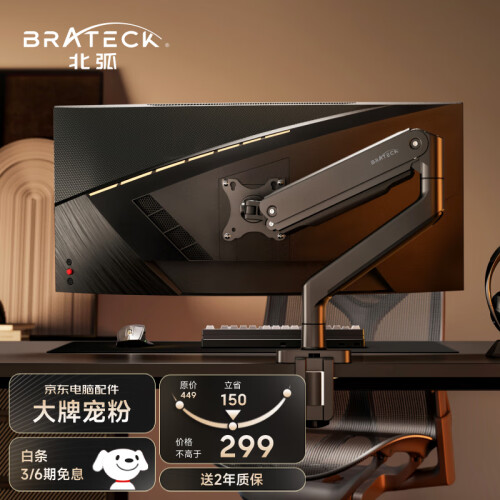 Brateck北弧 显示器支架 电脑支架底座 升降支架臂 显示器底座增高架 大屏幕支架17-35英寸E560晶体黑