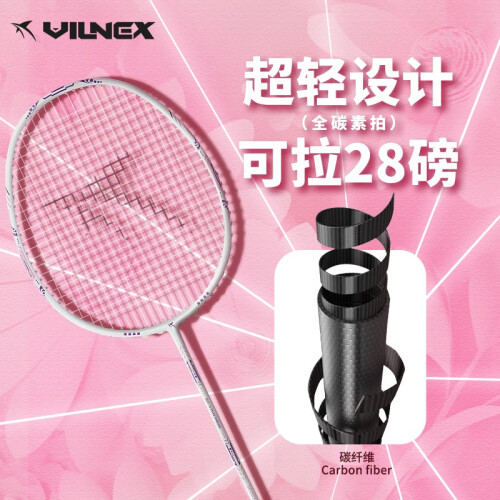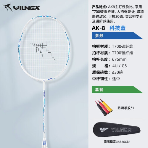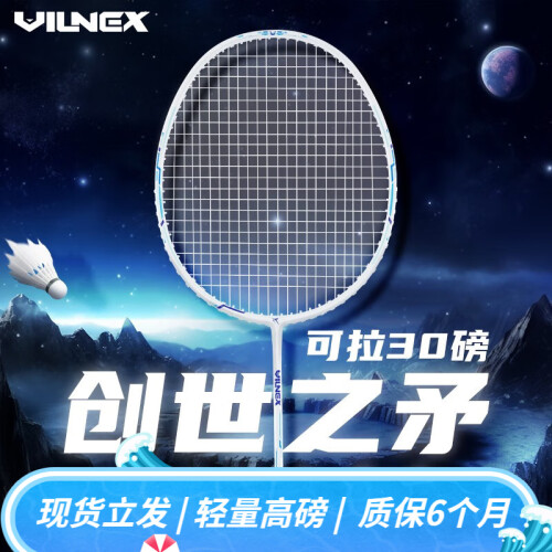 VILNEX瓦内克羽毛球拍全碳素单拍超轻耐打突击均衡之刃同款高磅糖水拍 创世之矛 亮白蓝4U 可拉30磅 【已穿线 默认24磅左右】
