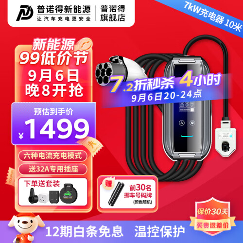 普诺得16A32A两用便携式充电桩特斯拉宝马埃安比亚迪几何新能源充电器枪 16A3.5KW/32A7KW两用 10米