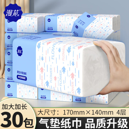 漫花4D压花大包抽纸整箱家用纸巾实惠装亲肤婴儿面巾纸餐巾纸 30包整箱【4D压花加厚加大】