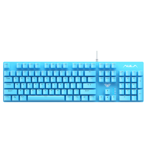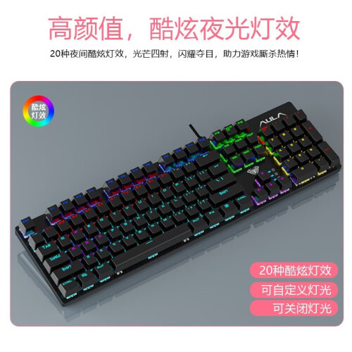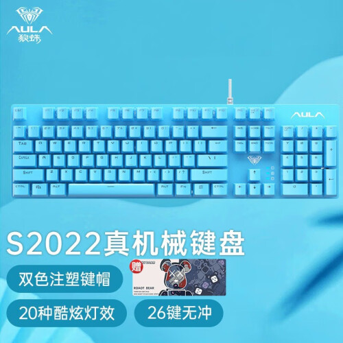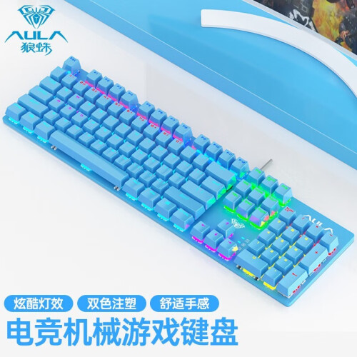 狼蛛(AULA)S2022真机械键盘青轴游戏键盘 104键办公电竞游戏键盘 台式电脑笔记本usb通用 天空蓝【混光】 青轴