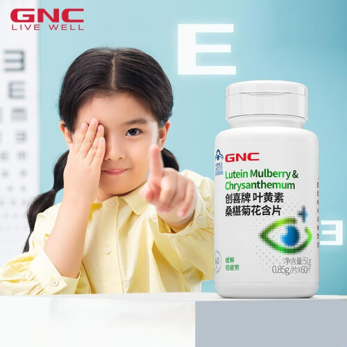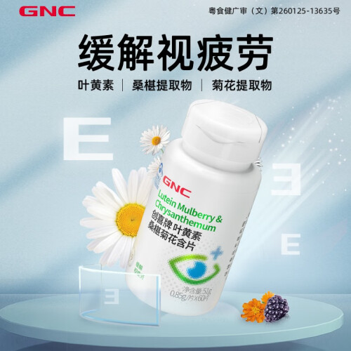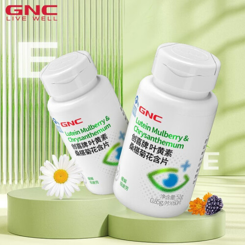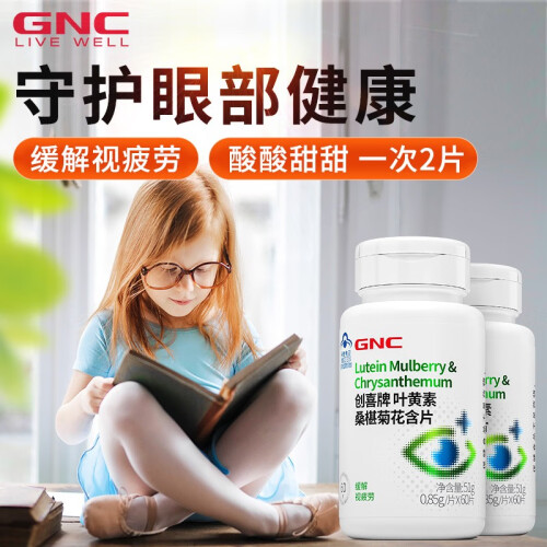 GNC健安喜 叶黄素桑椹菊花含片60片*2瓶 缓解视疲劳 眼睛疲劳 儿童叶黄素成人青少年眼部保健 2瓶