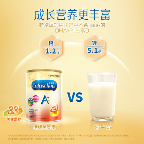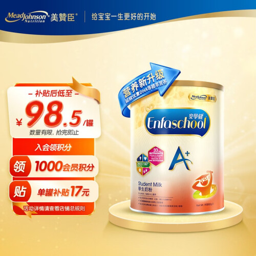 美赞臣(MeadJohnson)新升级版 港版A+安儿宝幼儿奶粉 优量DHA+HMO+益生元 【升级A+】5段850g