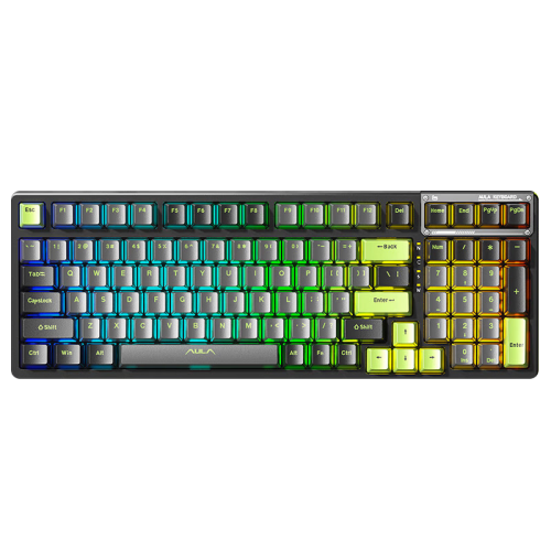 狼蛛(AULA)F98机械键盘三模客制化 无线/蓝牙/有线 透明RGB热插拔 99键电脑电竞游戏键盘 墨洛森林 冰魄轴
