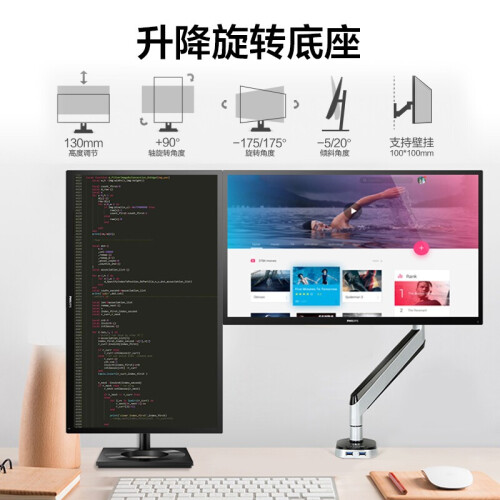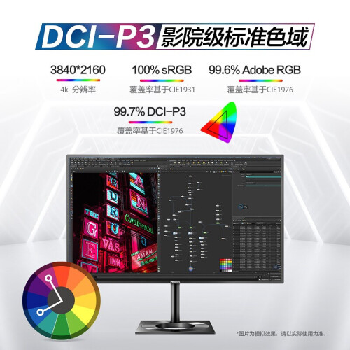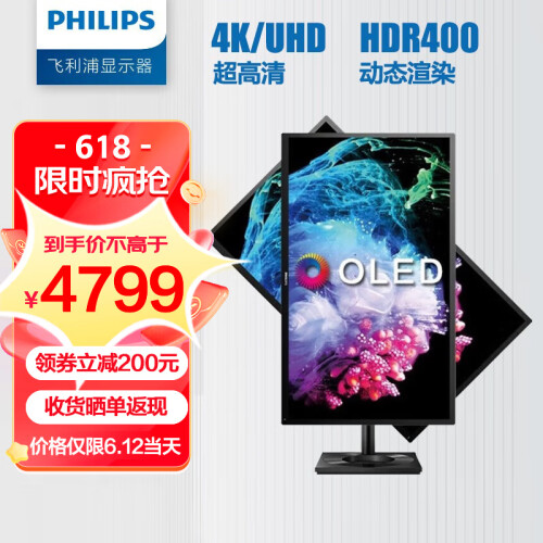飞利浦 27英寸OLED显示器 4K HDR400 原生0.1ms Type-C80w 专业设计 专业设计显示屏 27E1N8900 DeltaE<1 DCI-P3 99.7%