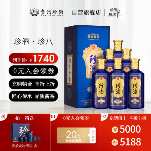 珍酒珍八 酱香型白酒 53度 500ml*6瓶 整箱装 酒中珍品 珍贵酱香