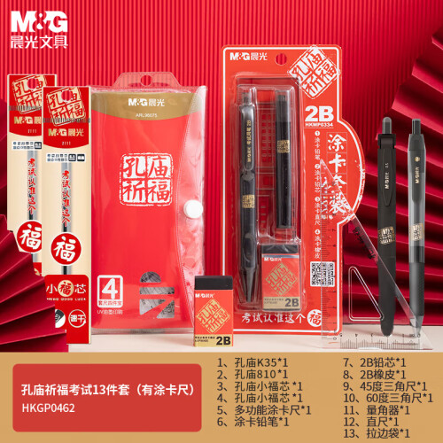 晨光(M&G)文具孔庙系列考试专用套装中性笔/替芯/涂卡尺/涂卡2B铅笔/套尺/橡皮 中高考/考研/考公13件套