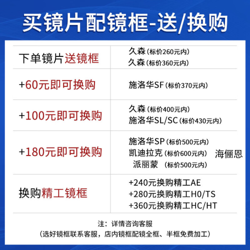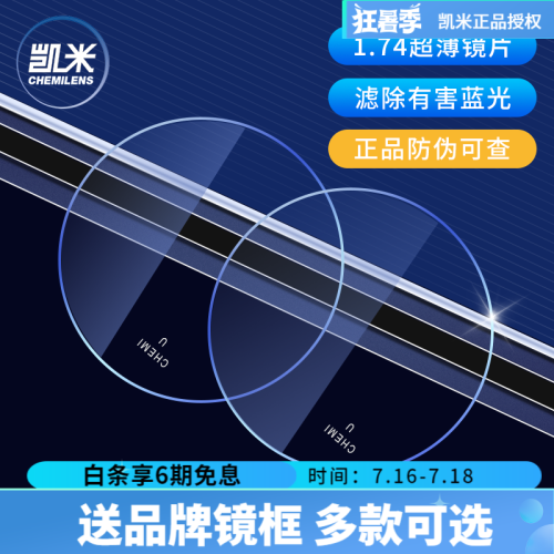 凯米韩国凯米镜片近视眼镜片U2/U6/防蓝光低中高度数福音网上配镜实体 凯米U6防蓝光(不送镜框) 1.74折射率2片装