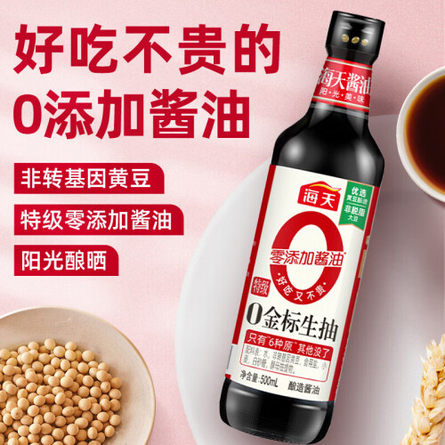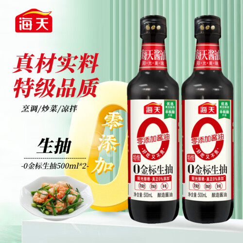 海天零添加金标生抽500ml*2 酱油 0添加防腐剂/添加剂/味精 特级酿造
