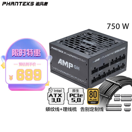 追风者(PHANTEKS)AMP GH金牌750W全模组机箱电源(ATX3.0/原生PCI-E5.0/蟒纹线/理线梳/全日系电容/温控启停)