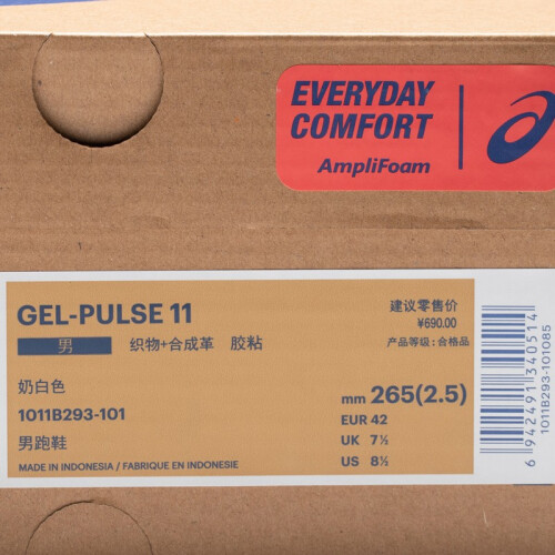 亚瑟士ASICS男鞋缓震跑鞋运动鞋舒适透气跑步鞋GEL-PULSE 11【HB】 奶白色 42.5