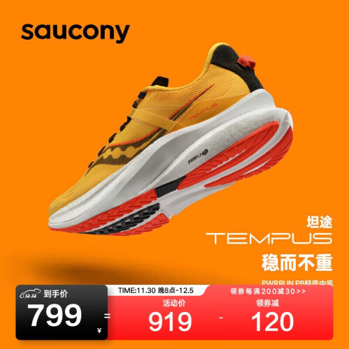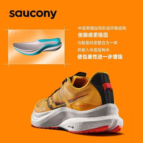 Saucony索康尼坦途男跑步鞋稳定支撑跑鞋缓震运动鞋TEMPUS黄红43
