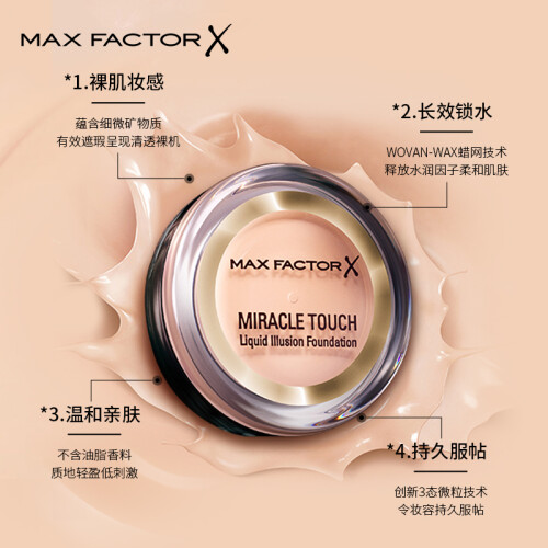 蜜丝佛陀(MAXFACTOR)水漾触感粉底霜遮瑕定妆裸妆粉底持久不脱妆45号暖杏色11.5g
