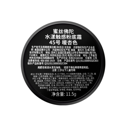 蜜丝佛陀是由美国好莱坞的彩妆大师——Max Factor于1909年创立的,其拳头产品是睫毛膏、粉霜、唇彩。这款粉底霜质地水润保湿,涂抹后成液态,与肌肤融合后会变成粉状,遮瑕效果也不错,对痘印和红血丝都有不错的效果,045#暖杏色适合自然肤色的妹子。