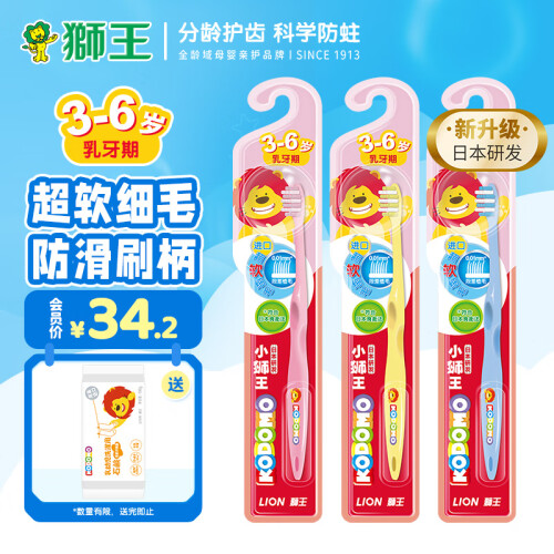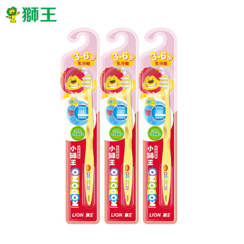 狮王(Lion)小狮王儿童牙刷套装3-6岁*3婴幼儿宝宝软细毛乳牙牙刷(颜色随机)