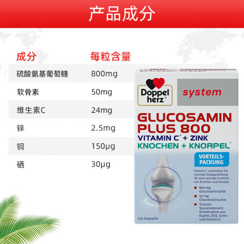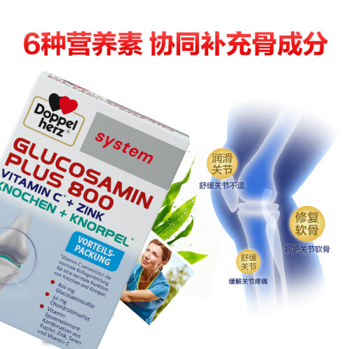 双心Doppelherz 多维氨糖软骨素PLUS800硫酸葡萄糖胺维生素C锌硒铜呵护关节 维骨力 120粒/盒 成人中老年适用
