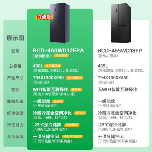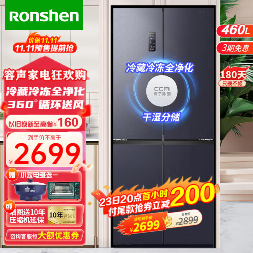 容声(Ronshen)容声冰箱460升四开门十字对开门双开门冰箱一级能效双变频大容量母婴超薄干湿分储风冷家用冰箱 460升冰箱