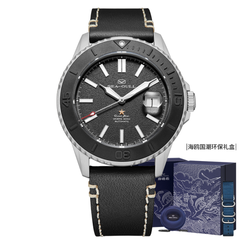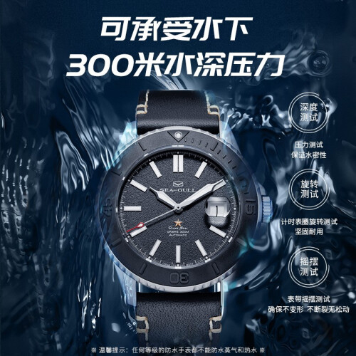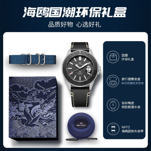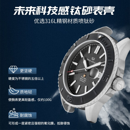 海鸥手表新年礼物男士机械表海洋之星系多功能国表 钛砂陶瓷圈300米防水1207