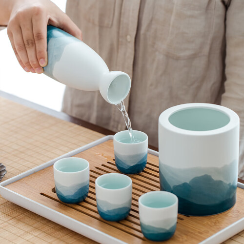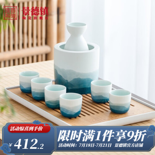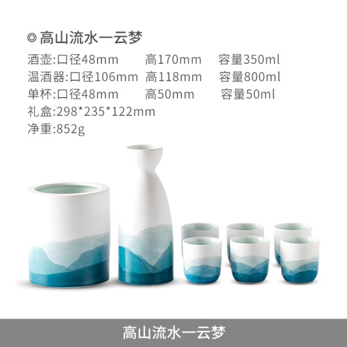 景德镇景德镇陶瓷官方高山流水酒具套装家用白酒小酒杯醒酒器酒壶组合 云梦酒具套组