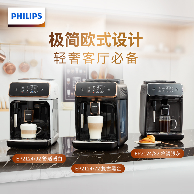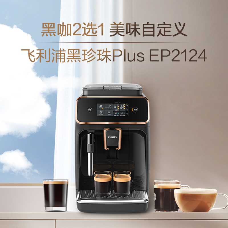 飞利浦黑珍珠Plus意式全自动咖啡机EP2124家用办公室奶泡研磨一体