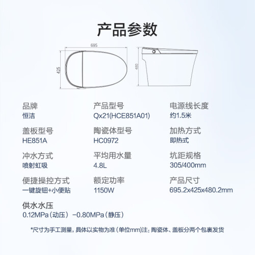 恒洁(HEGII)智能马桶Qx21 小便贴全自动加热虹吸式坐便器HC0972(坑距305mm)