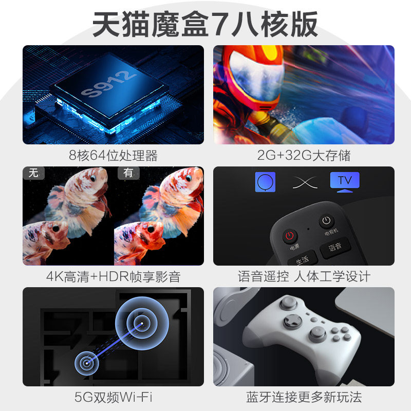 天猫魔盒7八核版智能语音电视盒子高清网络机顶盒家用无线投屏器