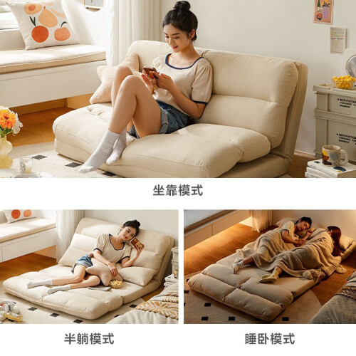 林氏家居 沙发床折叠床两用小户型客厅多功能坐卧可拆洗单人沙发林氏木业 【奶杏色】G800-A沙发床