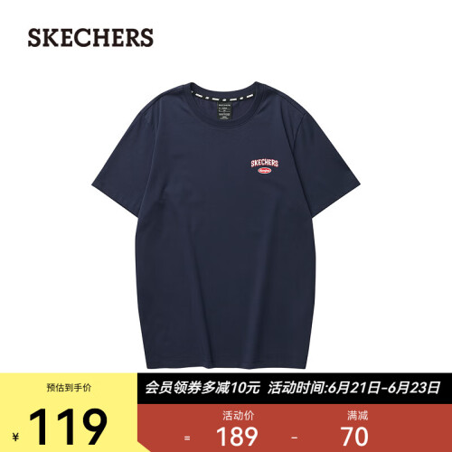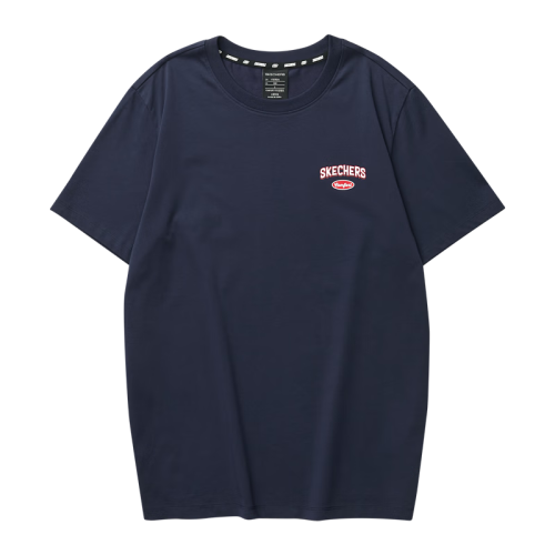 斯凯奇(Skechers)男女同款T恤衫LOGO印花圆领针织短袖L223U057 海军蓝/00DU XS