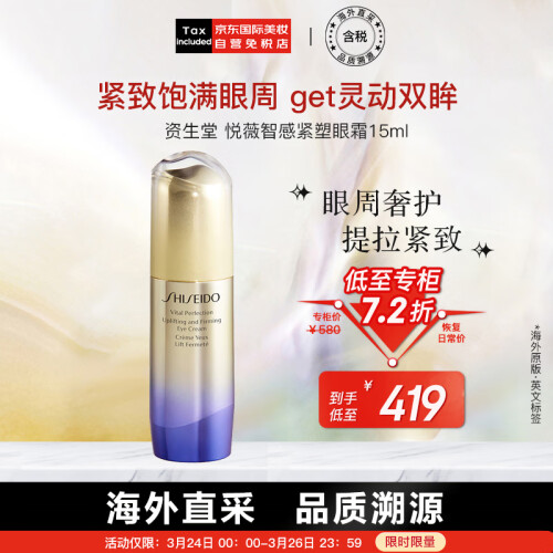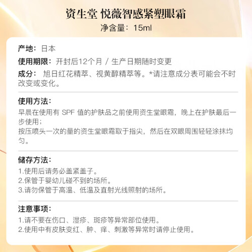 资生堂(SHISEIDO)悦薇智感紧塑眼霜15ml 紧致提亮 提拉紧致 日本进口 护肤礼物