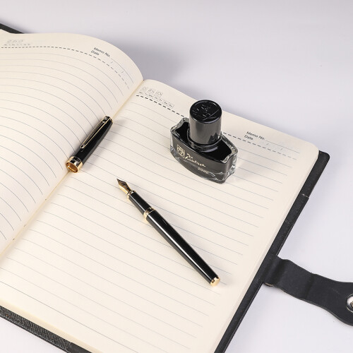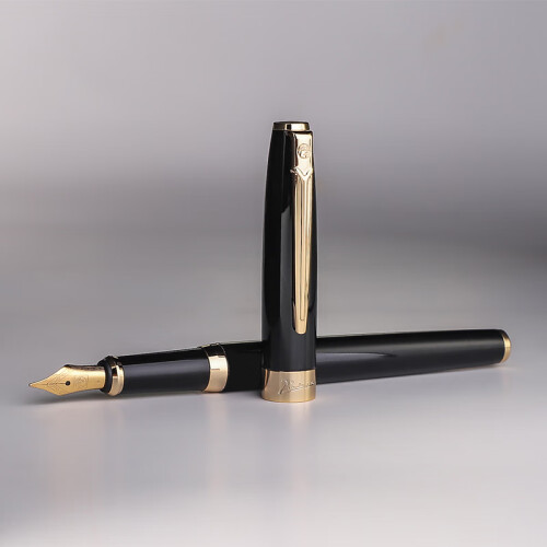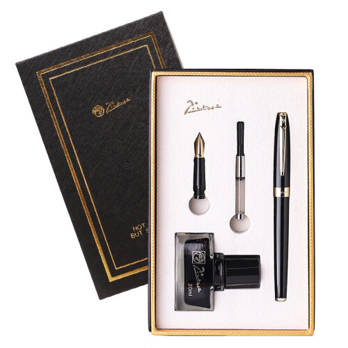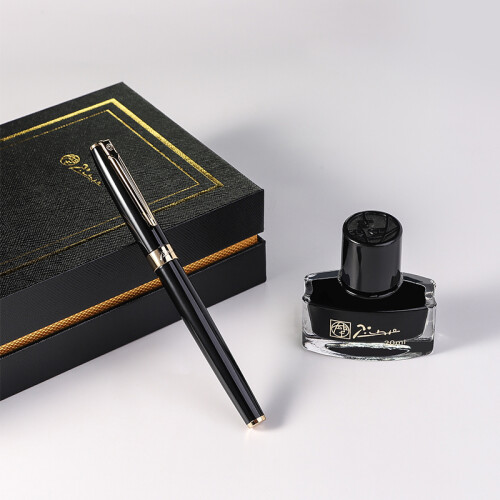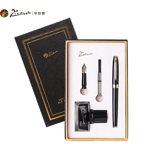 毕加索(pimio)钢笔礼盒墨水套装 签字笔双笔尖0.5mm+0.7mm男女节日礼物 学生练字笔美工笔T717亮黑金夹