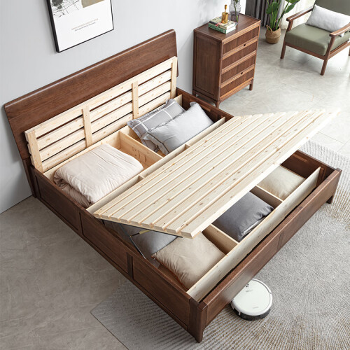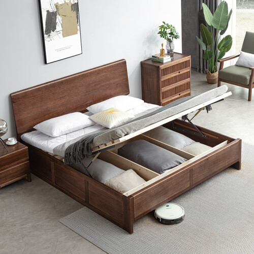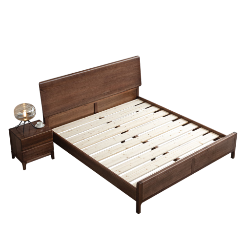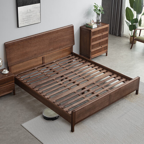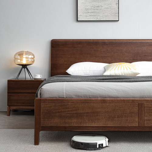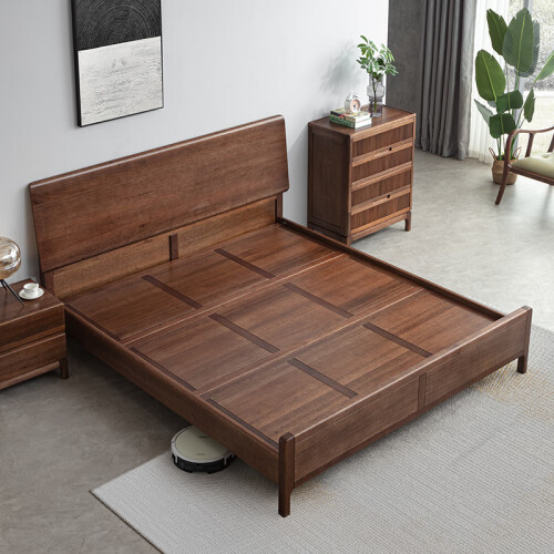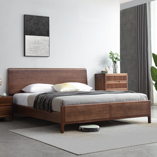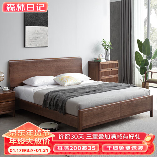 森林日记全实木床北欧卧室胡桃木轻奢大床现代简约1.5米1.8米双人床大板床 单床 1.5*2.0米框架结构