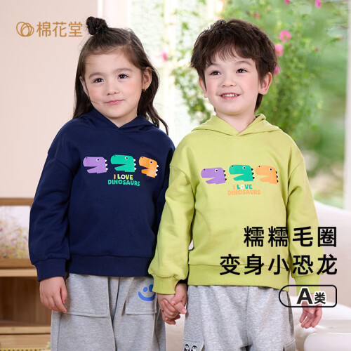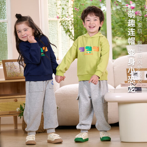 棉花堂童装2024春季新款儿童针织连帽卫衣小童卡通可爱休闲上衣潮 草绿 100/56
